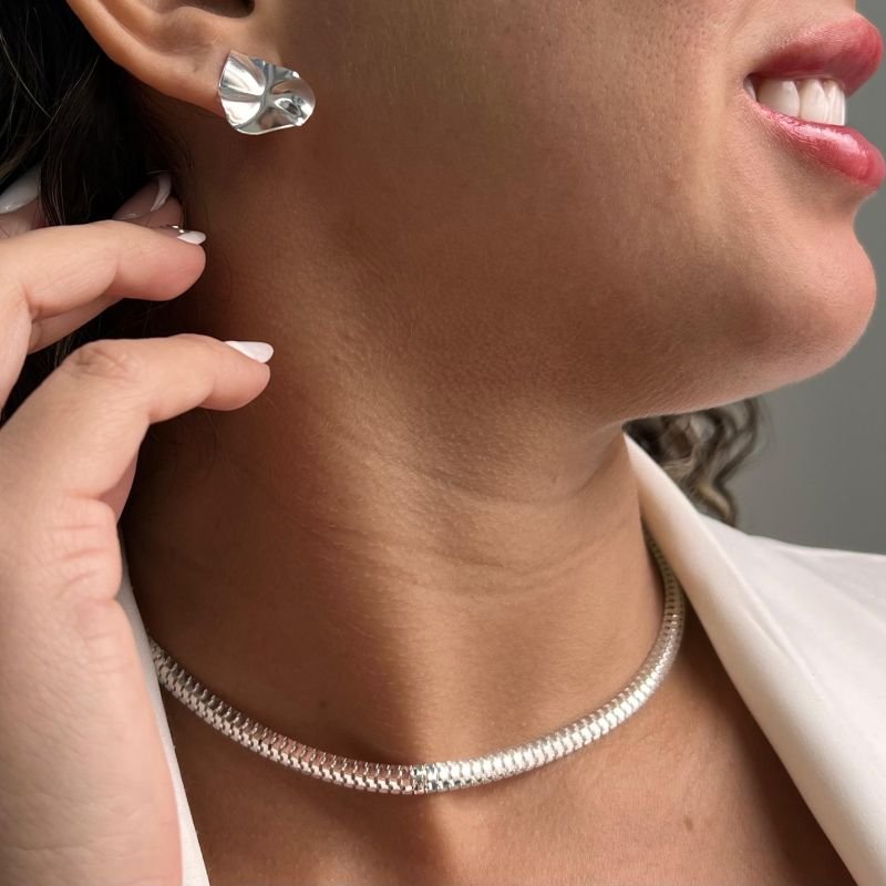 Choker Esteira Fina Banho Ouro 18k/Prata 925