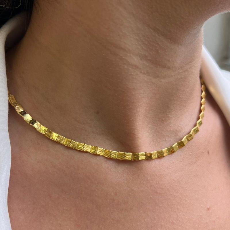Choker Laminada Orgânica Banho Ouro 18k