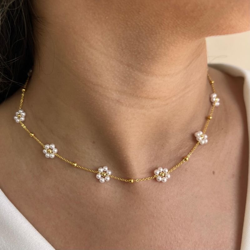 Choker Pérola Flor Banho Ouro 18k/Prata 925
