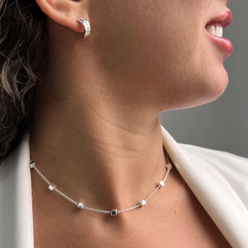 3. Choker Quadrada Banho Ouro 18k/Prata 925