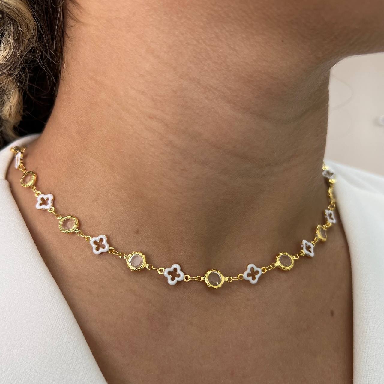 Choker Resinado Cristal Banho Ouro 18k