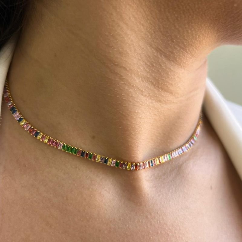 3. Choker Riviera Multicolor Fina Banho Ouro 18k/Prata 925