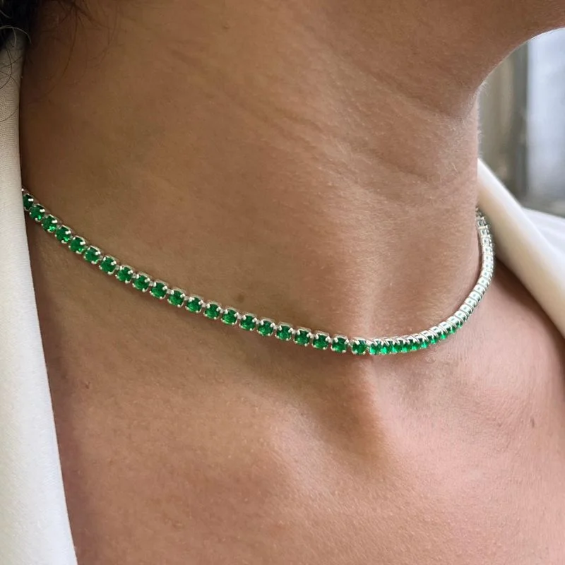 Choker Riviera Verde Banho Ouro18k/Prata 925