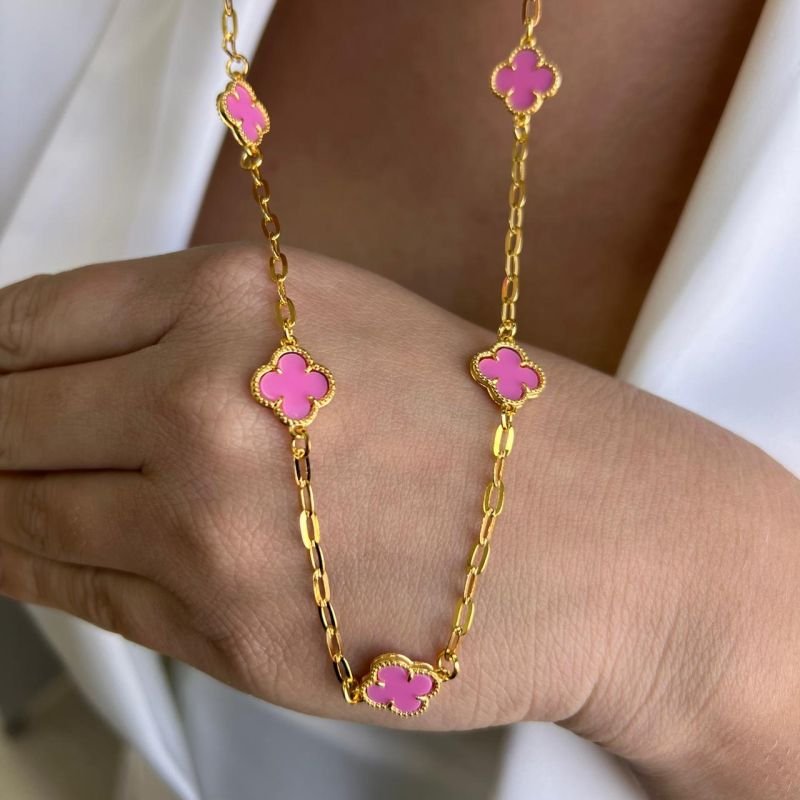 Choker Trevo M Rosa Banho Ouro 18k/Prata 925