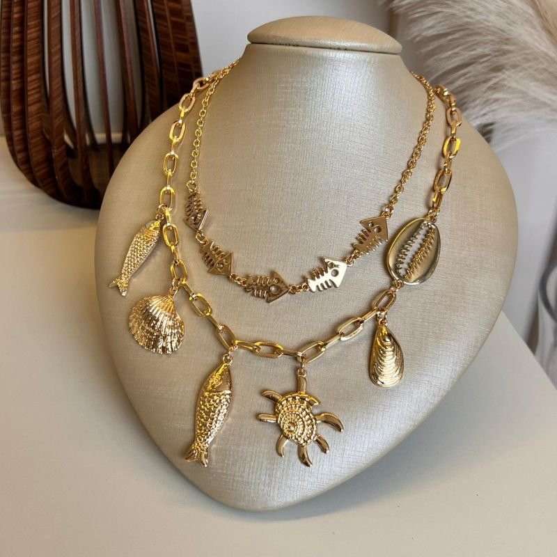 3. Colar Concha 2 Em 1 Biju Fina Dourado
