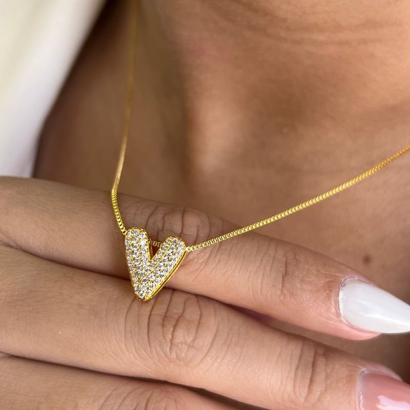 3. Colar Coração Cravejado Banho Ouro 18k/Prata 925