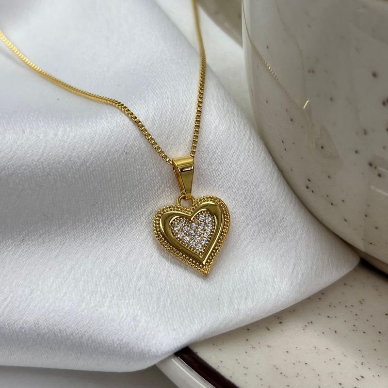 Colar Coração Cravejado De Zircônia Banho Ouro 18k