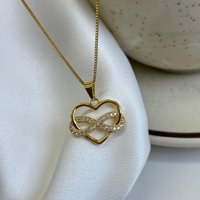 Colar Coração Infinito Banho Ouro 18k/Prata 925