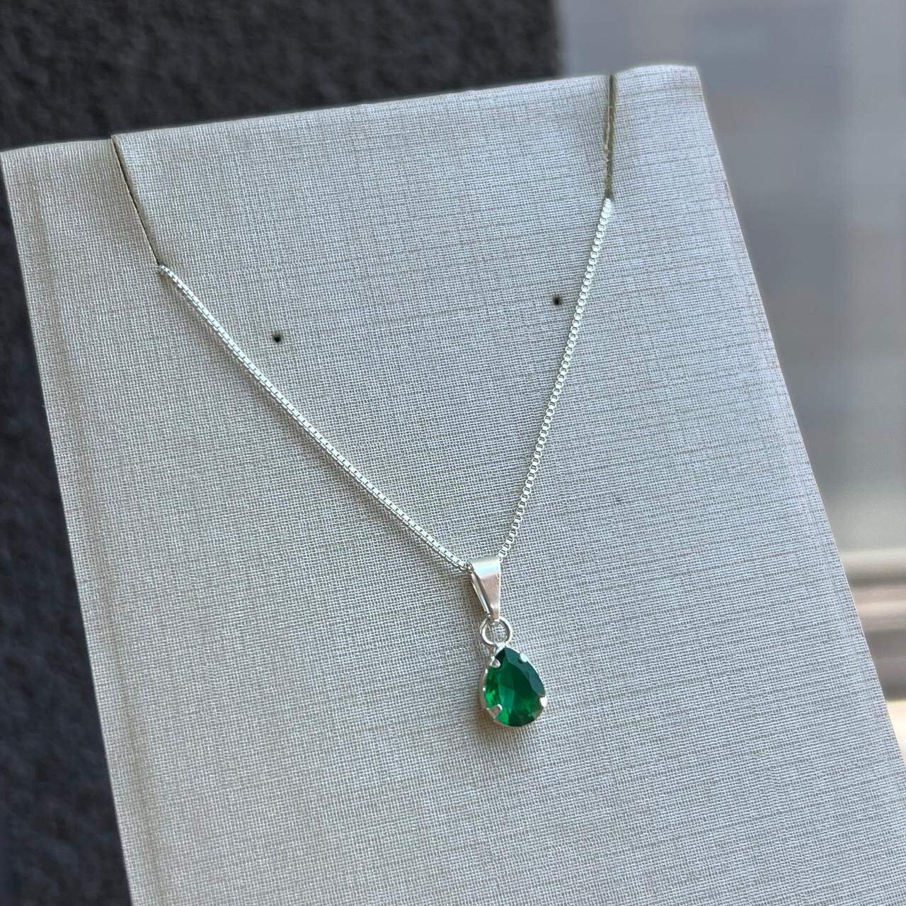 Colar De Gota Esmeralda Infantil Banho Prata 925