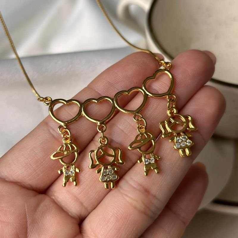 Colar Filhos (Dois Casais) Banho Ouro18k/Prata 925