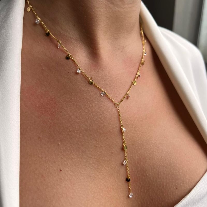 Colar Gravata c/ Ponto de luz Banho Ouro 18k/Prata 925