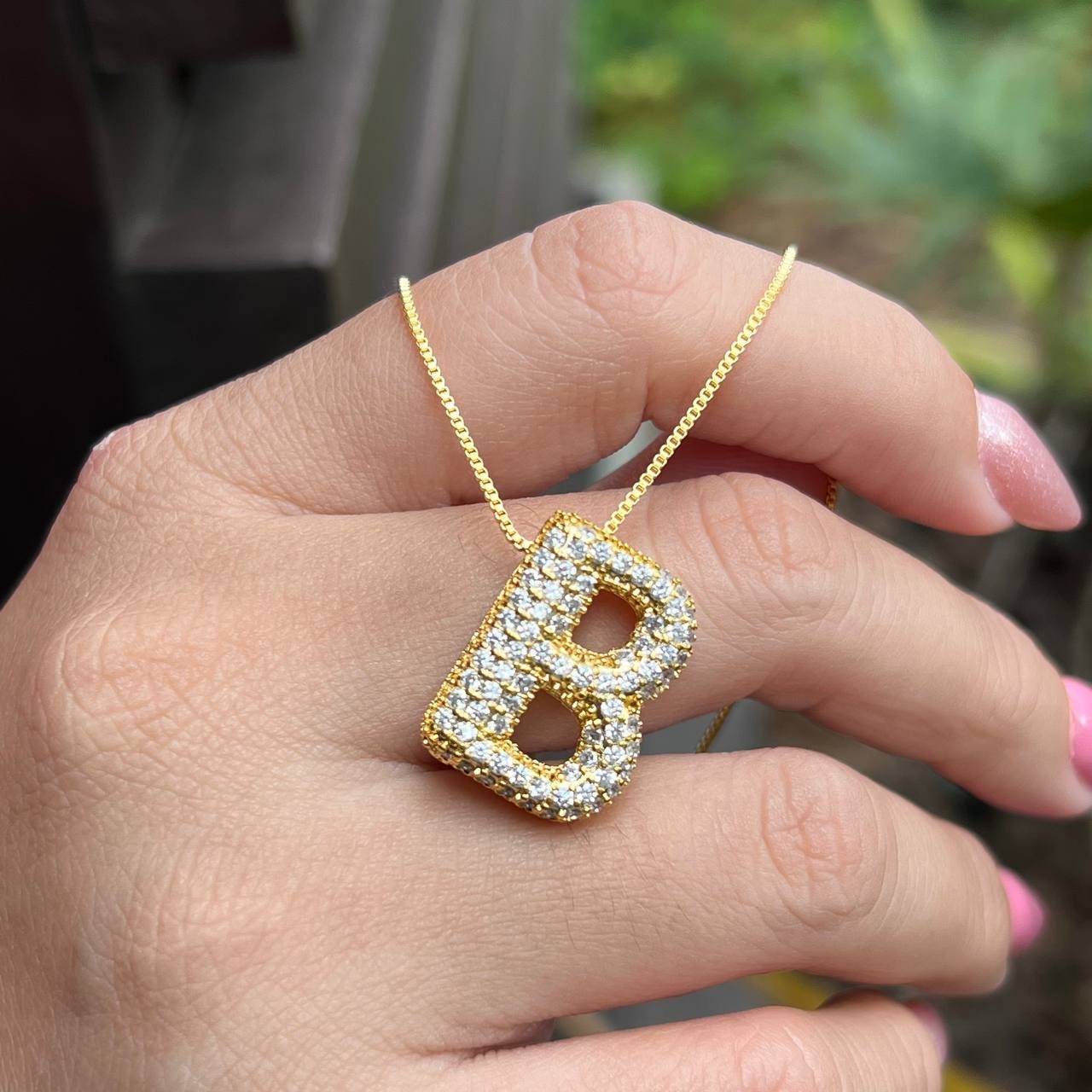 Colar Inicial B Cravejado Banho Ouro 18k