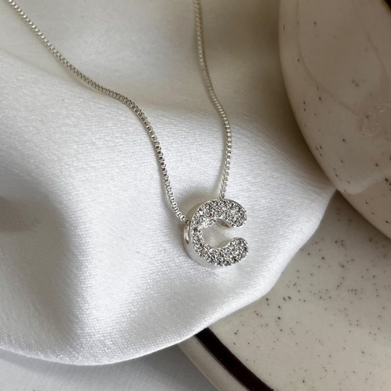 3. Colar Inicial C Cravejado Banho Ouro 18k/Prata 925