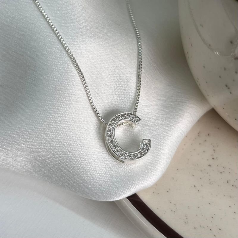 3. Colar Inicial C Cravejado Banho Ouro 18k/Prata 925