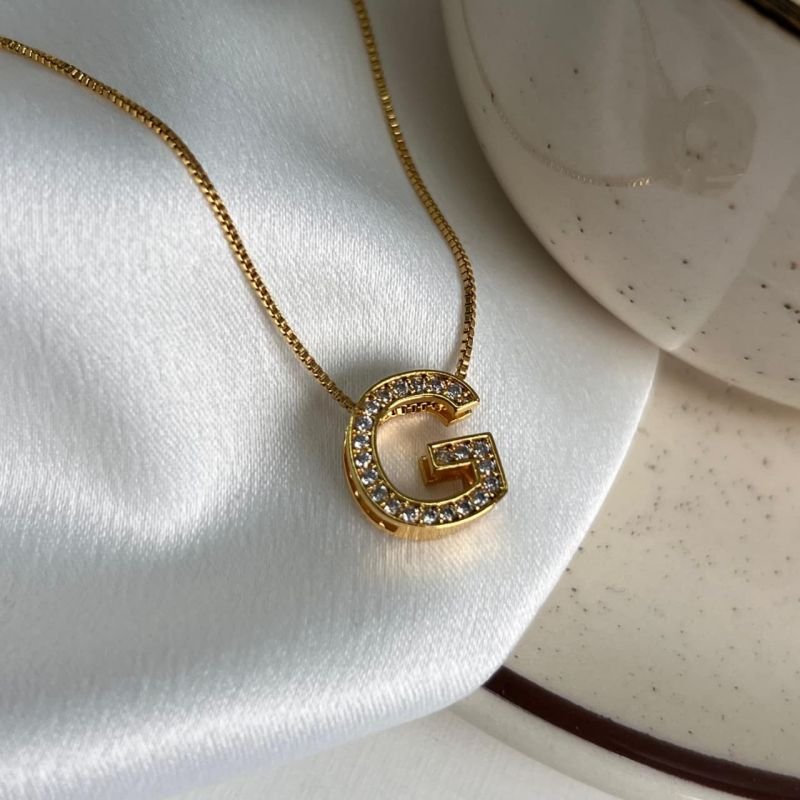 Colar Inicial D Cravejada Banho Ouro 18k/Prata 925