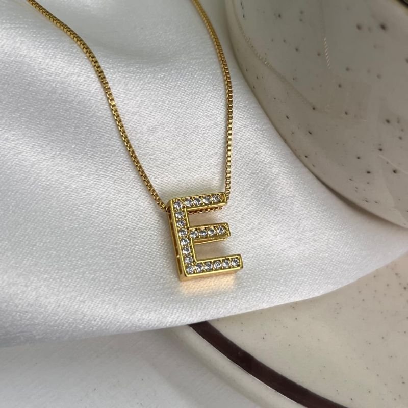 3. Colar Inicial E Cravejado Banho Ouro 18k/Prata 925