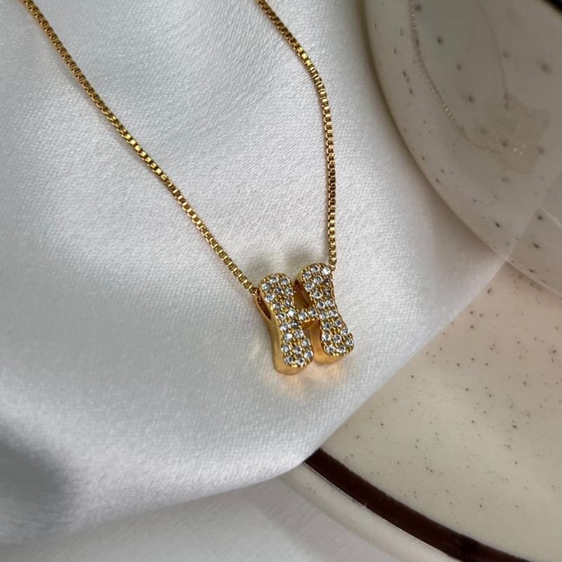 3. Colar Inicial H Cravejado Banho Ouro 18k/Prata 925