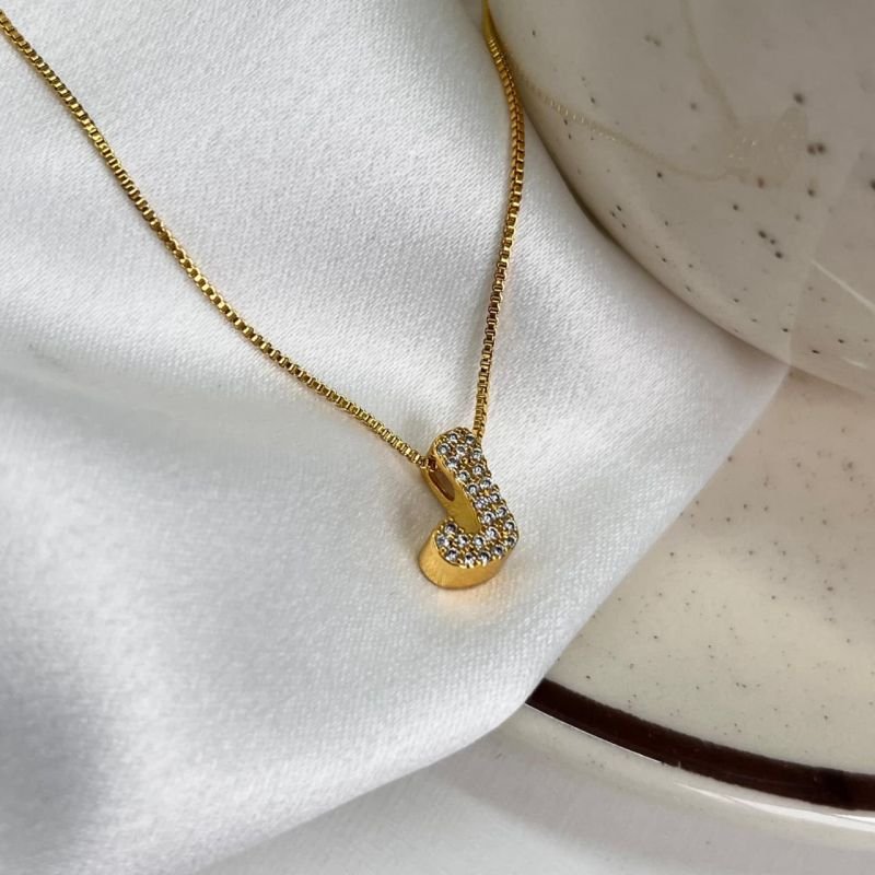 Colar Inicial J Cravejado Banho Ouro 18k/Prata 925