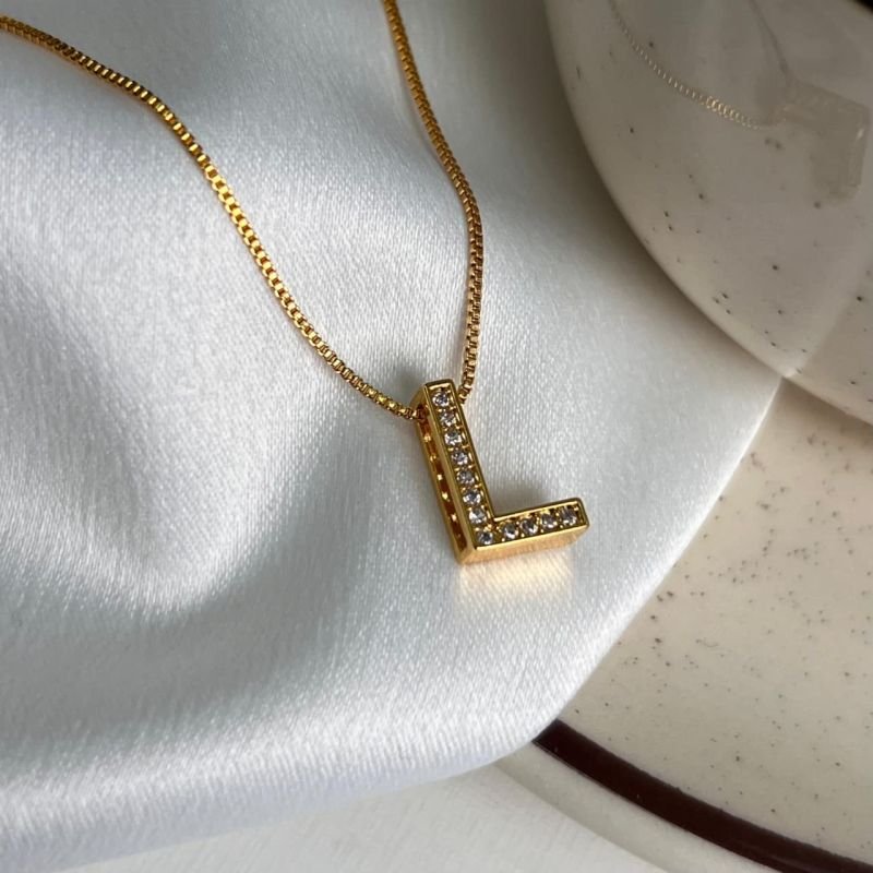 Colar Inicial L Cravejado Banho Ouro 18k/Prata 925