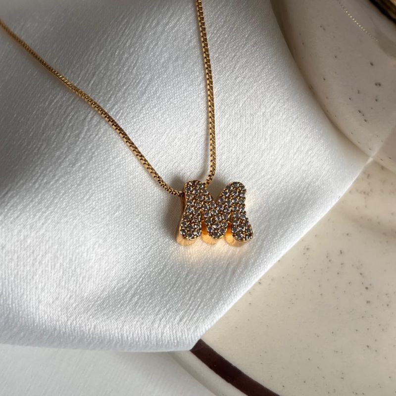 Colar Inicial M Cravejado Banho Ouro 18k/Prata 925