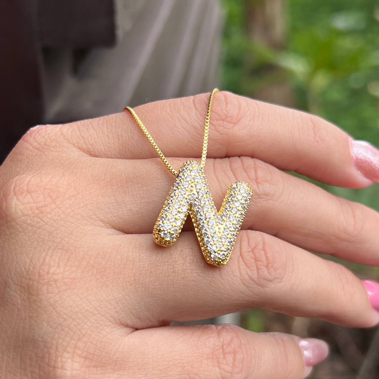 Colar Inicial N Cravejado Banho Ouro 18k