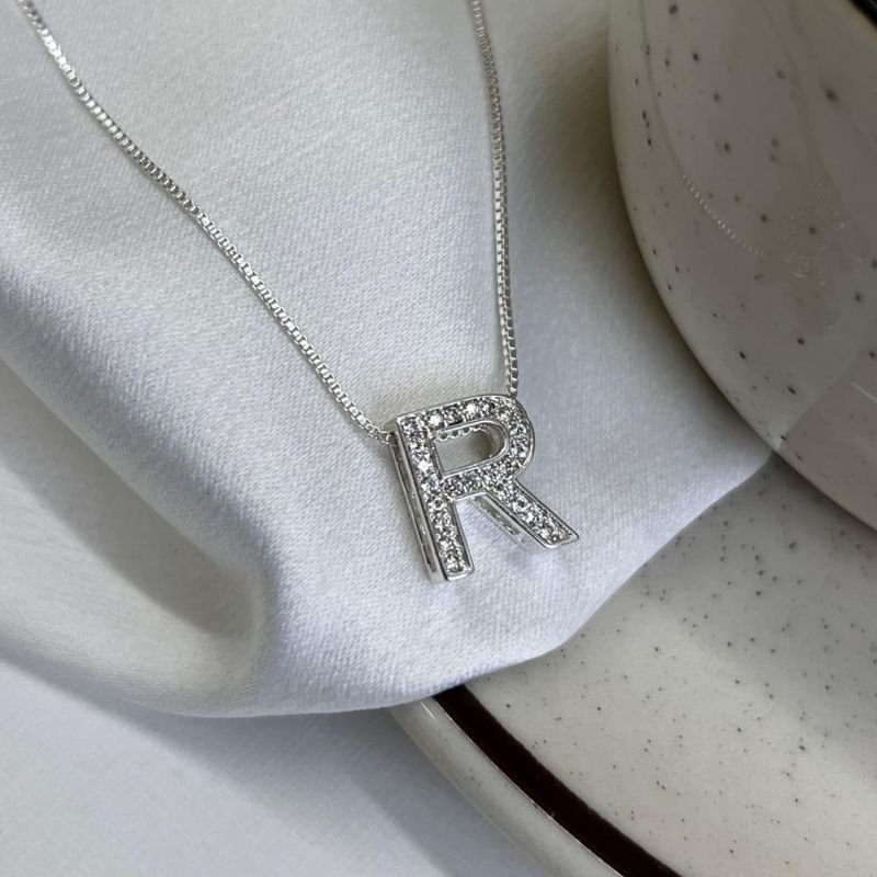 3. Colar Inicial R Cravejada Banho Ouro 18k/Prata 925