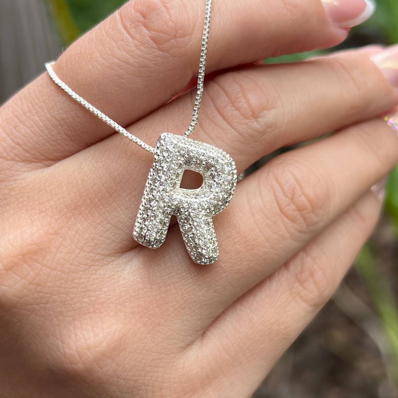 3. Colar Inicial R Cravejado Banho Prata 925