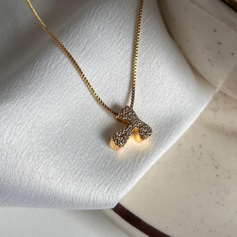 Colar Inicial T Cravejado Banho Ouro 18k/Prata 925
