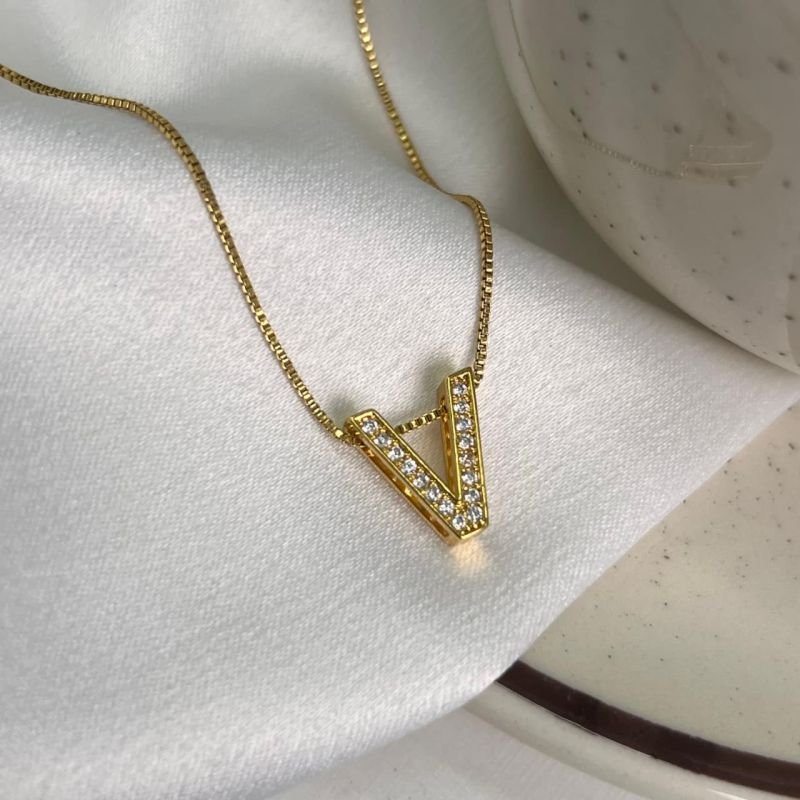 Colar Inicial V Cravejado Banho Ouro 18k/Prata 925