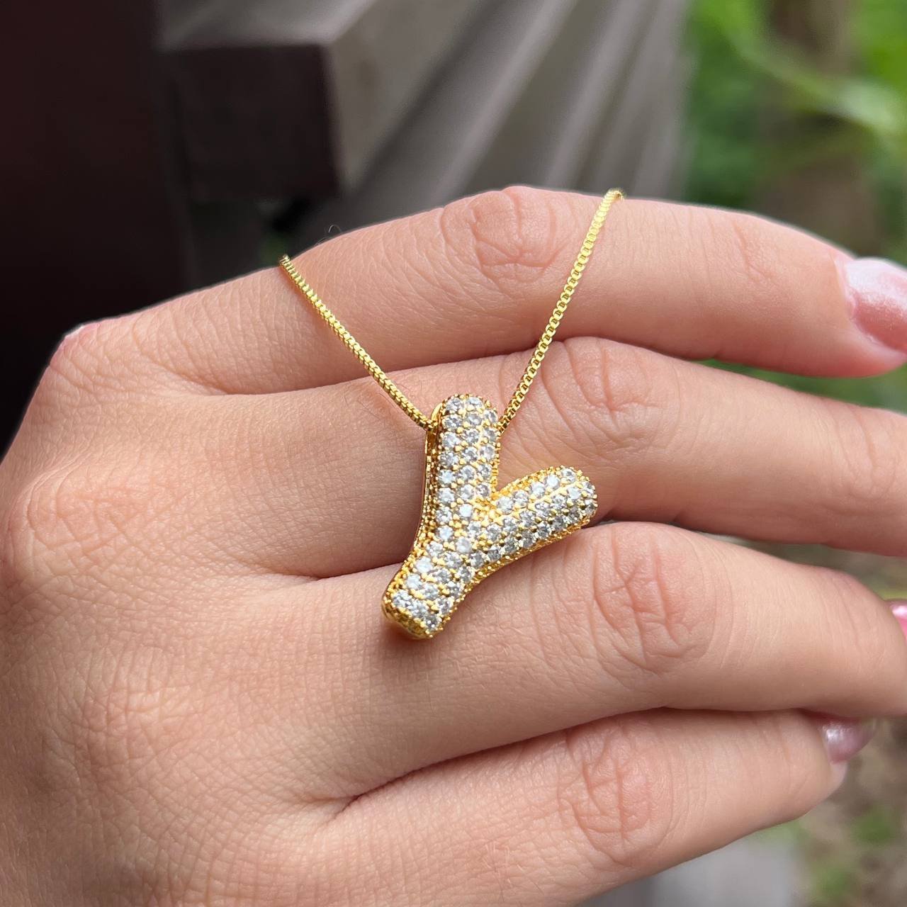 Colar Inicial Y Cravejado Banho Ouro 18k