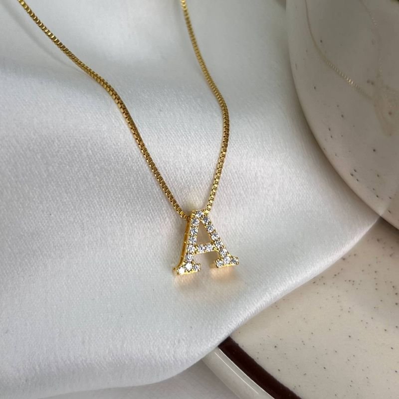 3. Colar Letra A Banho Ouro 18k/Prata 925