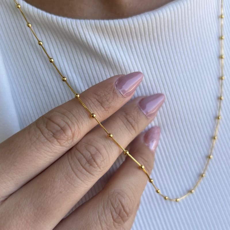 Colar Mini Esferas Médio 58cm Banho Ouro 18k/Prata 925