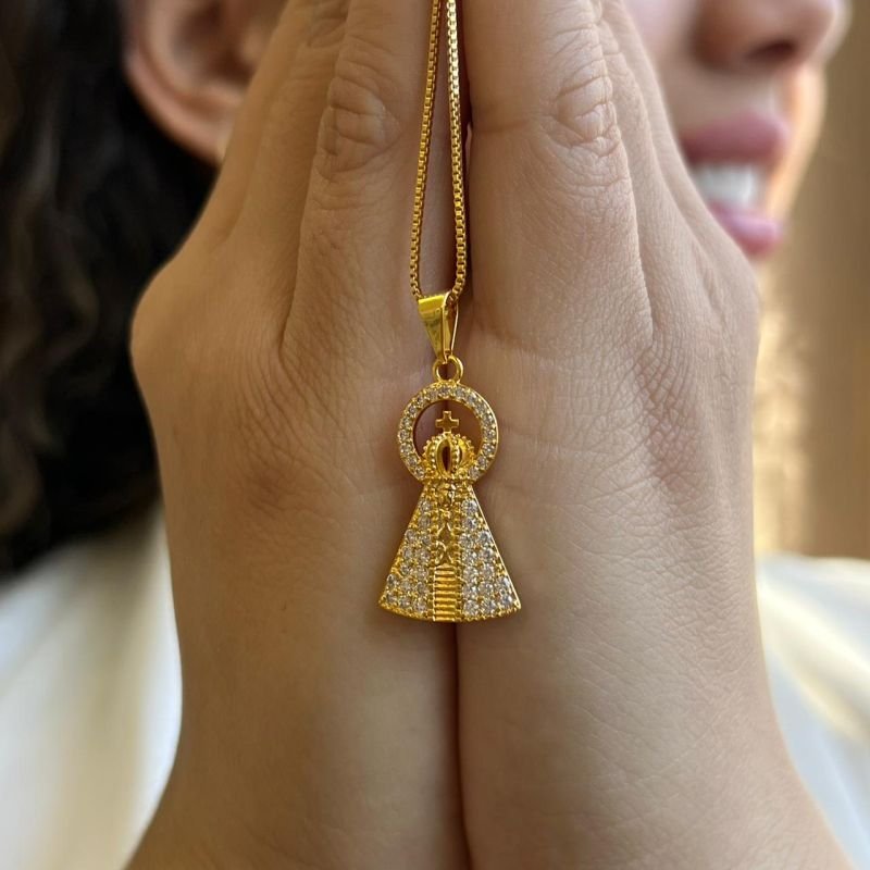 Colar Nossa Senhora Cravejada M Banho Ouro 18k/Prata 925