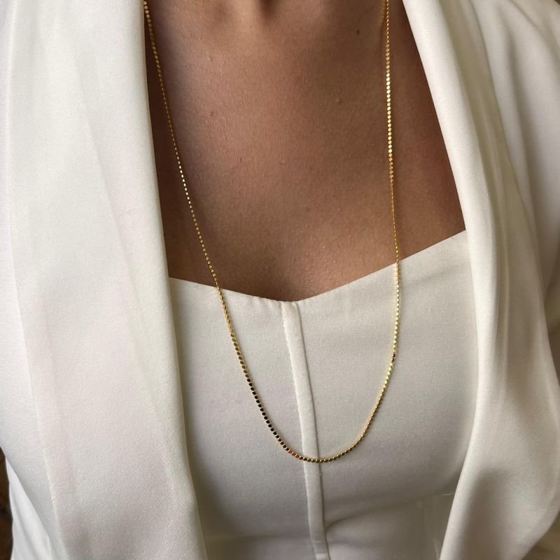 Colar Pontilhado Longo 80cm Banho Ouro18k/Prata 925