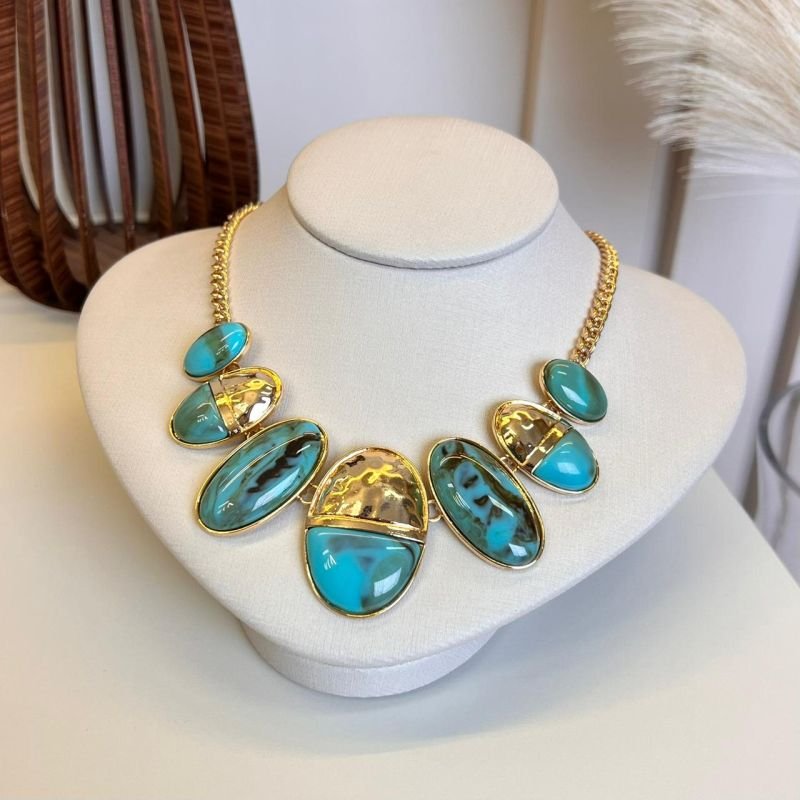 Evitar contato com água do mar ou piscinas. Caso ocorra, lave sua bijuteria com sabão neutro e deixe-a secar bem antes de guardar novamente.