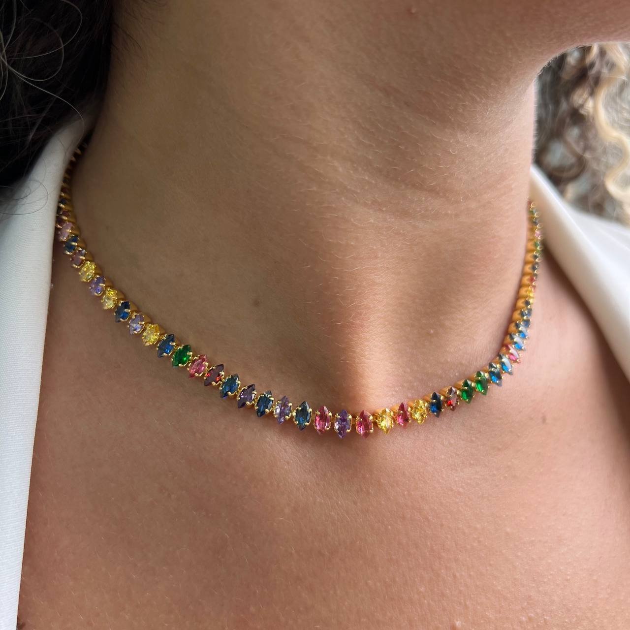 3. Colar Riviera Navete Colorida Banho Ouro 18k