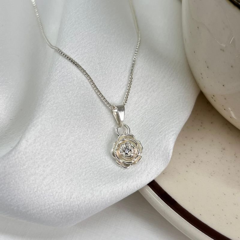 Colar rosa Banho Ouro 18k/Prata925