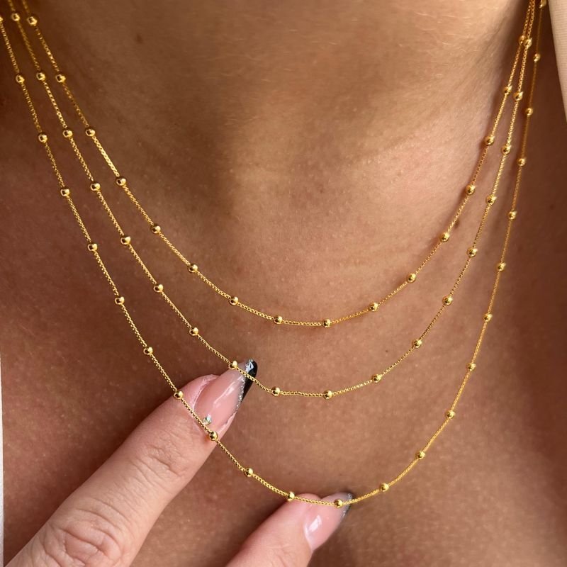 Colar Três Voltas Esferas Média Banho Ouro 18k/Prata 925