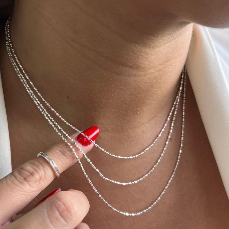 3. Colar Três Voltas Pontilhado Banho Ouro 18k/Prata 925