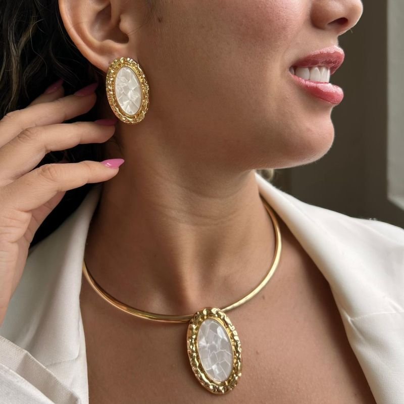 Conjunto Choker Aro + Brinco Biju Fina Dourado/Ródio