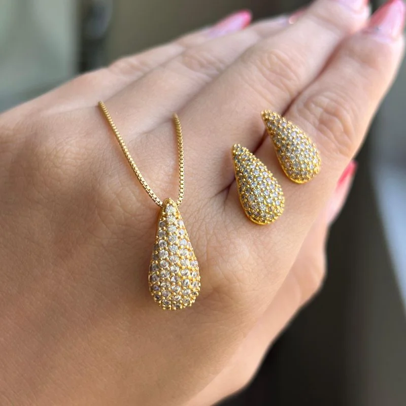 3. Conjunto Colar + Brinco Banho Ouro 18k/ Prata 925