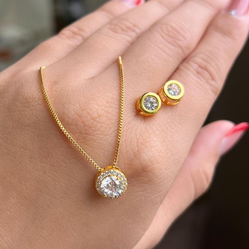 Conjunto Colar + Brinco Banho Ouro 18k/Prata 925