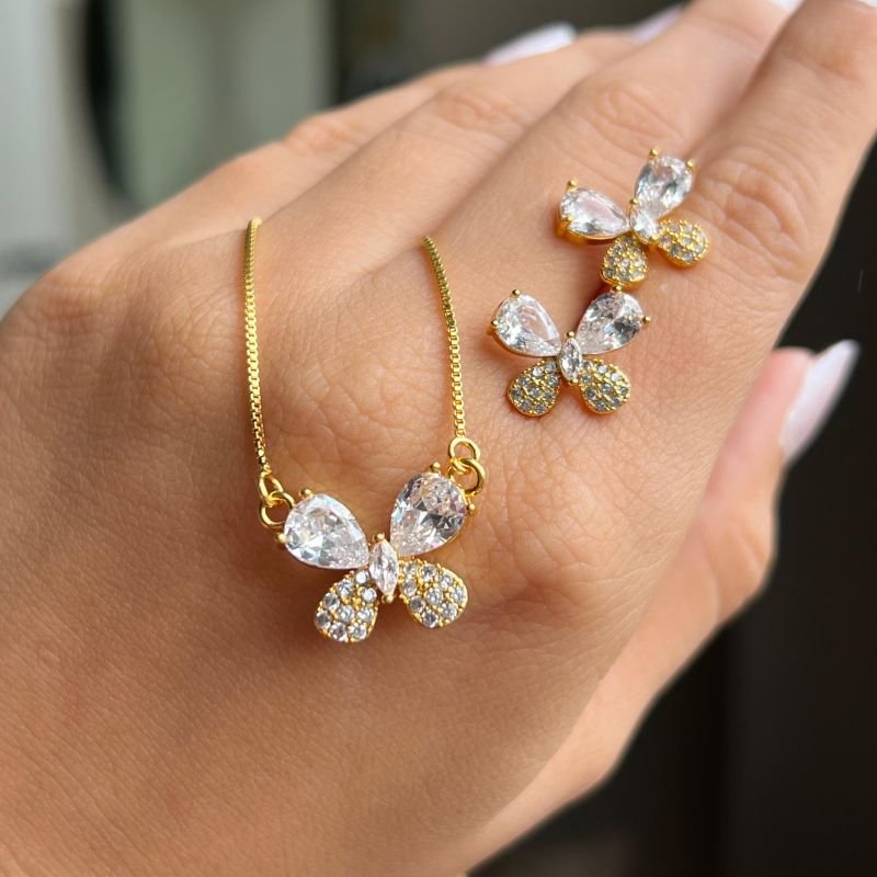 Conjunto Colar + Brinco Banho Ouro18k/Prata 925