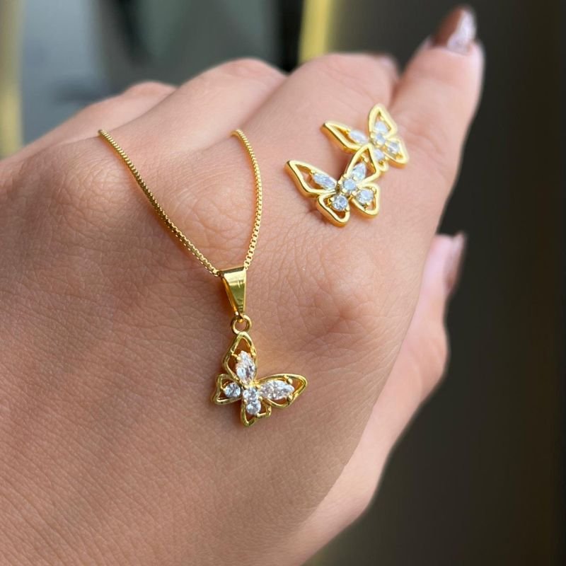 Conjunto Colar + Brinco Banho Ouro18k/Prata 925