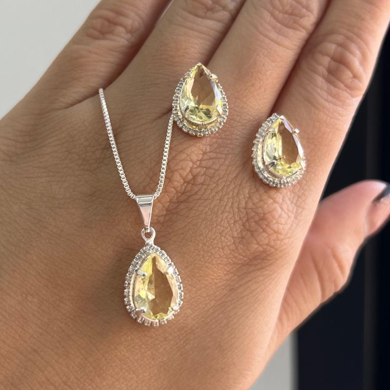 Conjunto Colar + Brinco Gota banho Prata 925