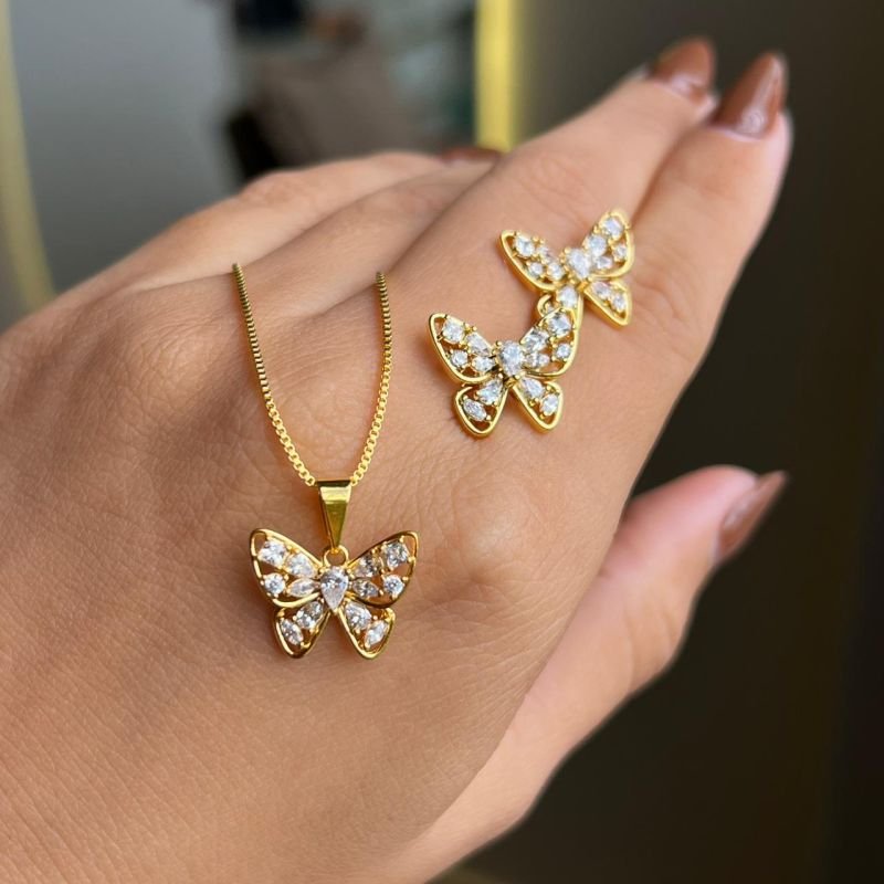Conjunto Colar + Brinco Médio Banho Ouro18k/Prata 925