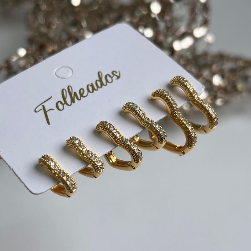 3. Kit De Brinco Coração Cravejado Banho Ouro 18k