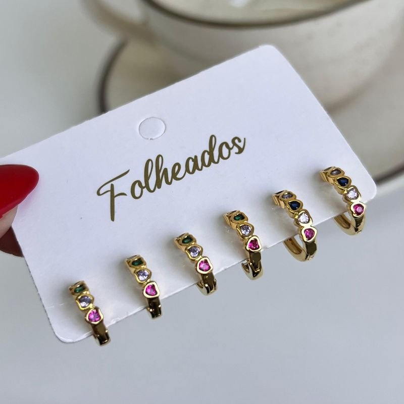 Kit de Brinco Multicor Banho Ouro 18k/Prata 925