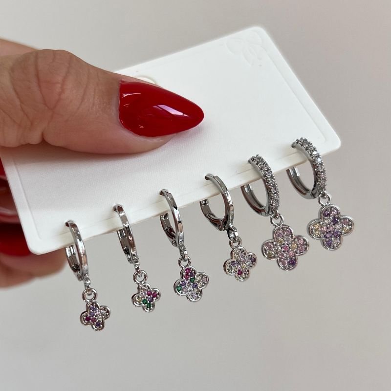 Kit de Brinco Trevo Cravejado Biju Fina Ródio