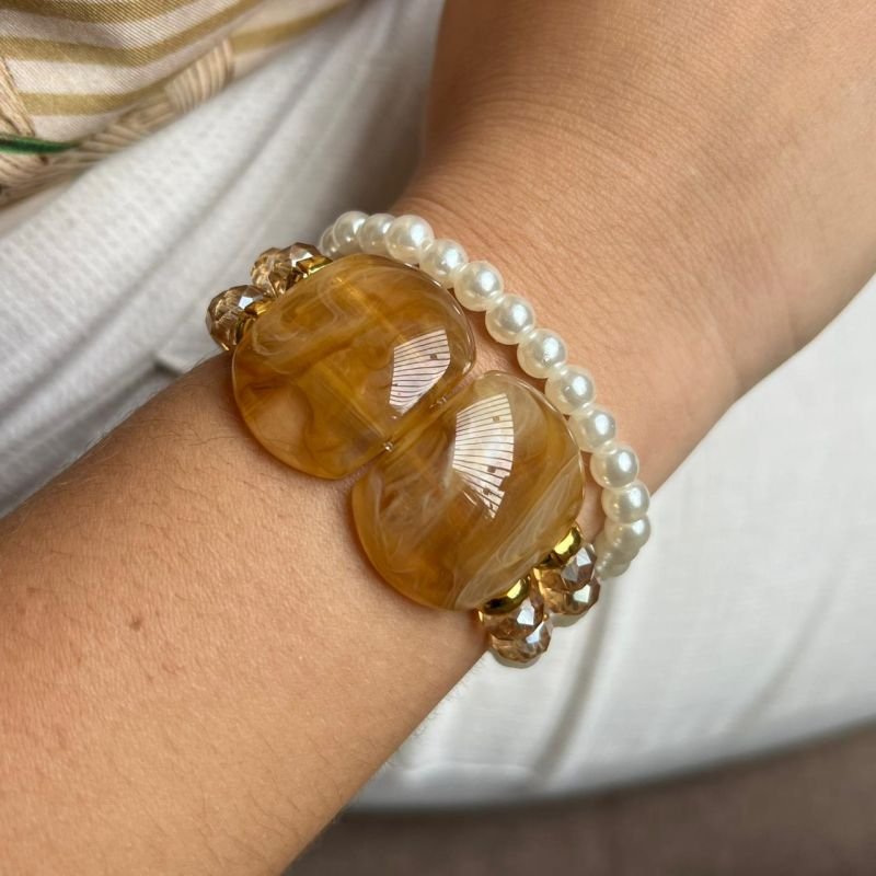 Mix De Pulseiras C/ Resina Caramelo Linha Bijuteria